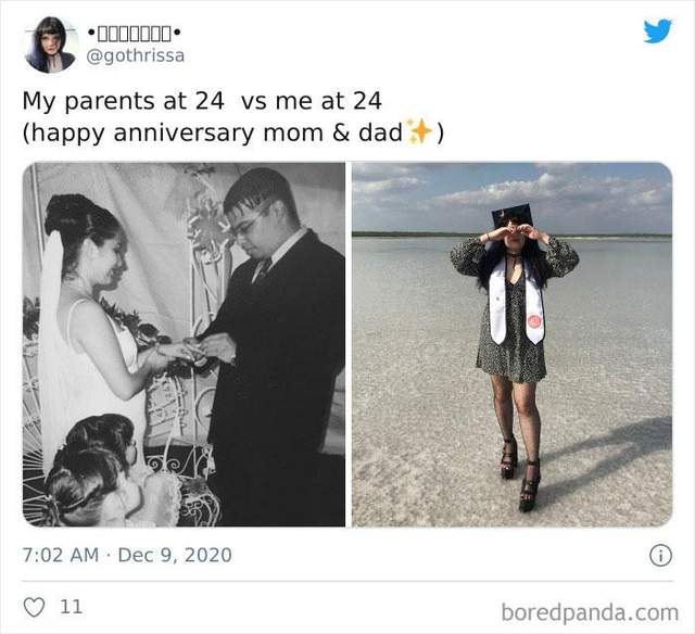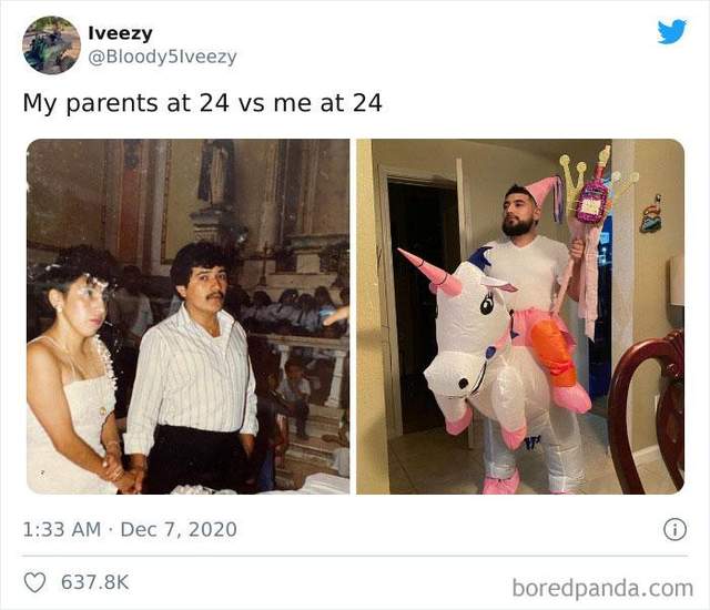 Пользователь твиттера Ивези написал пост, который стал вирусным и собрал более 637,6 тысячи лайков. По его мнению, большая разница между поколениями заключается в том, что нынешнее более расслаблено. Им безразлично, что скажут люди.