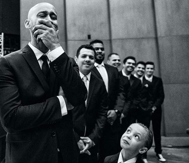 Такие кадры обязательно нужно сделать, как воспоминание, для фотоальбома. Независимо от того, эта первая встреча происходит приватно или во время впечатляющего выхода невесты на общей церемонии.