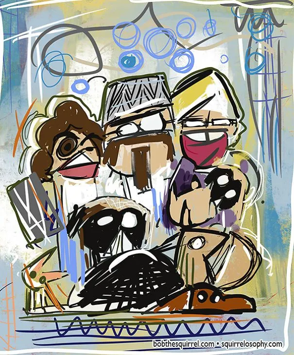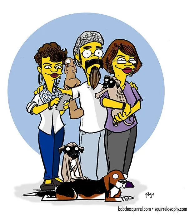 Сначала художник изобразил своих родных героями попудярних мультфильмов, а впоследствии даже в стилях художников.