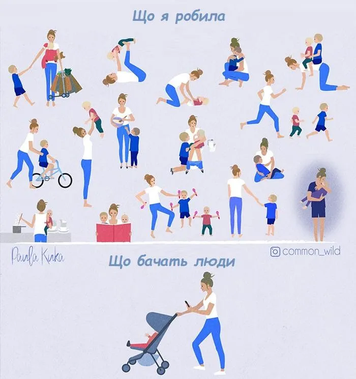 Художница пыталась рассказать, что люди быстро могут осудить эту женщину, потому что она не следит за своим малышом. Но никто не знает тысячи мелких вещей, которые она сделала в этот день для своих детей.