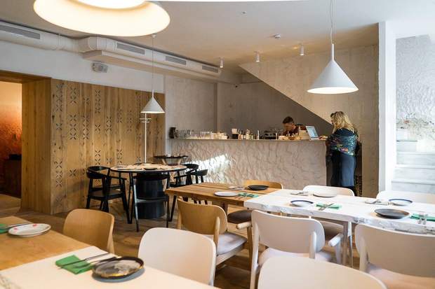 За проект двухэтажного помещения на углу здания отвечала команда архитектора Славы Балбека Balbek Bureau, которая до этого имела опыт работы с рестораном украинской кухни Barvy. "Это была непростая задача – сделать так, чтобы заведение представляло всю страну, но при этом не было слишком традиционным и слишком современным", – говорит Клопотенко.