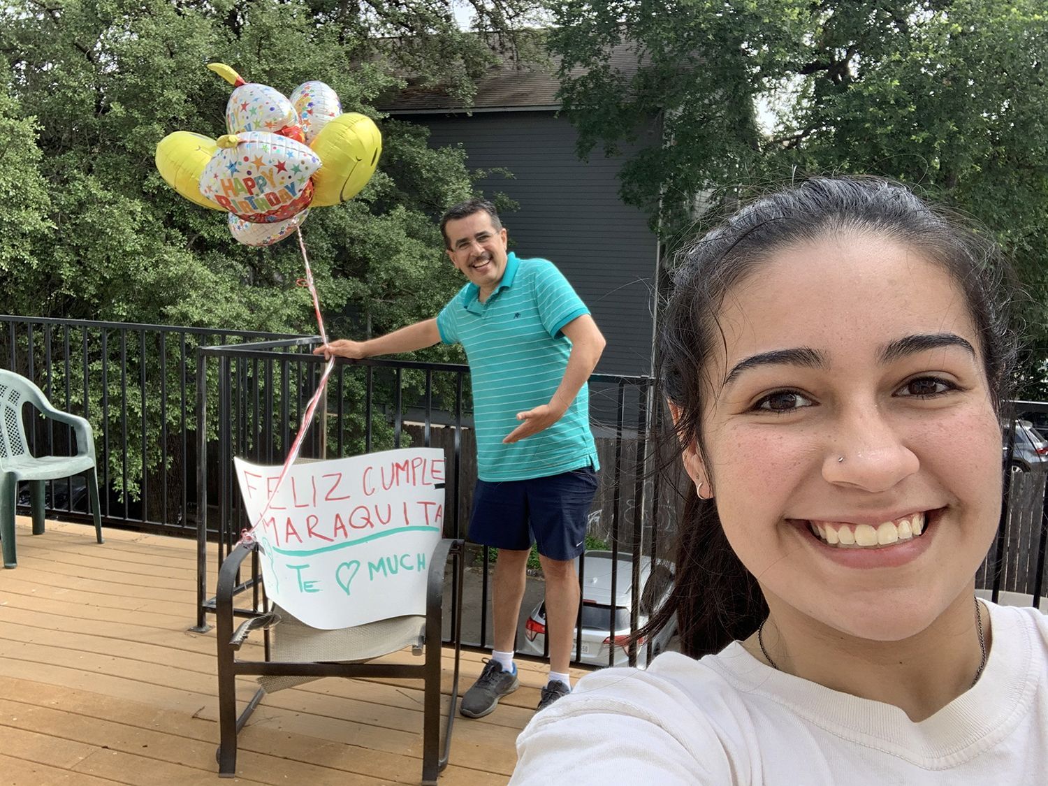 Диана открыла дверь своего дома, надеясь увидеть водителя доставки, но была удивлена, поняв, что перед ней ее папа с воздушными шариками и плакатом "С днем рождения". Добавим, что Хулио не пропустил еще ни одного года, чтобы не поздравить дочь лично.