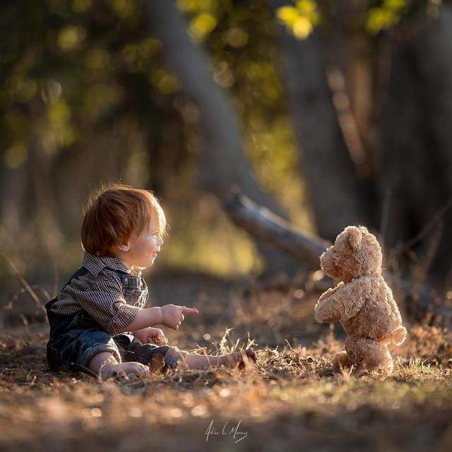 Все началось со старшего сына фотографа, который выглядел так, будто разговаривает с мишкой. Это была обычная фотография, которую мужчина сделал во время прогулки. Об этом сообщило издание Bored Panda.